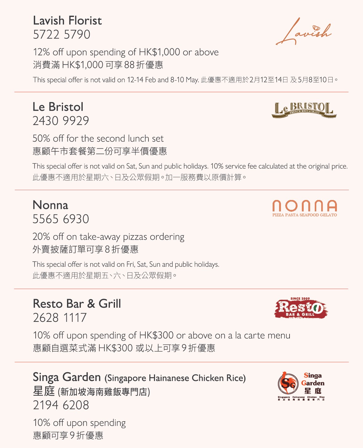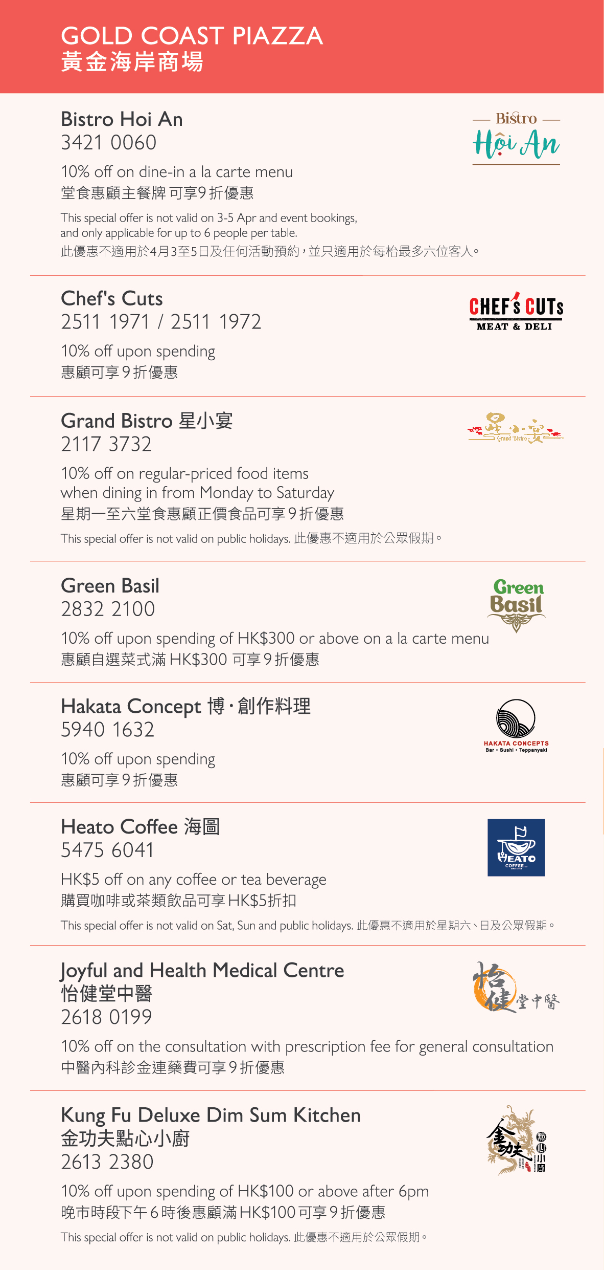 • 请于点菜 / 付款前出示香港黄金海岸住户证。